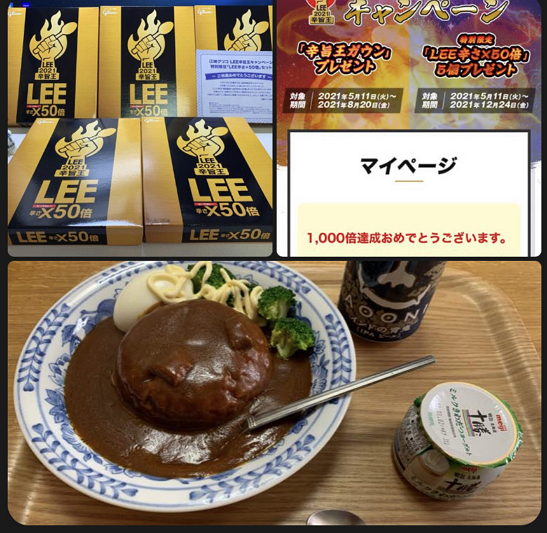 20倍を50杯たべると、Lee 50倍を5個もらえる。